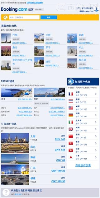 1)Booking在邮件内容规划上,一般包含为推荐目的地、2013精选、世界各地的订阅用户优惠、当地订阅用户优惠等栏目,设计以“图片+文案描述+ CTA按钮“组成。Booking邮件营销的独到之处在于,以不同颜色、字体重点突出价格优惠对比等最具吸引力的因素,图片质量高;时刻提醒的订阅用户专享,为用户营造了特有的归属感,大大提高了邮件用户体验。不足之处在于,追求面面俱到的邮件内容以及以地域为主导的导航内容,使得其邮件中对于酒店产品的具体特色、亮点等信息刻画不够,对于对价格不敏感的用户来说,邮件缺乏足够吸引力。