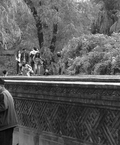 记者走访故宫等五个景区,发现不文明游园行为依旧存在。在八达岭长城,负责卫生保洁工作的辛女士说,一成人拿钥匙在城墙上刻字时被她制止。圆明园遗址公园内,不断有游客爬上黄花阵迷宫的阵墙,完全无视迷宫外竖立的“禁止攀爬、严禁刻画”的告示牌。