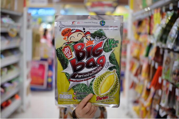 的新口味是“榴莲口味”,我的泰国朋友说这个口味可能是为了中国人,因为泰国人不太喜欢榴莲口味的零食,所以我买来试吃 我觉得味道挺好的,