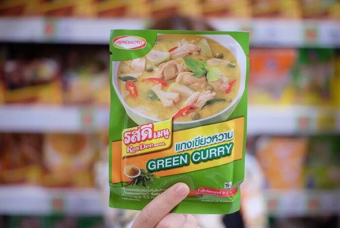 包。我在微博看过一个 Review ,她也说 Rosdee Menu 是 Best Selling 的调料包。这次我买了三种口味来试吃,但我最喜欢的是“绿咖喱”。我带回国做给家人是吃,我觉得 Rosdee Menu 最大的好处就是“方便”,不要准备那么多调料,只是加入鸡肉和你喜欢的菜就可以啦!这个调料包还有椰浆粉,味道又香又浓很地道跟在泰国吃的一模一样。(我觉得还比中国的泰国餐厅好吃的!)大家肯定喜欢,这么好的调料包。。。买买买!
