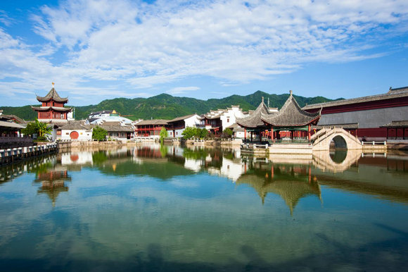 明清民居博览城景区的大多建筑都是从民间古宅原址一砖一瓦迁徙过来的,造价相对昂贵,其中以徽派建筑居多。在这里体验中华传统文化最为契合,所以集茶艺、粽艺、米塑、竹艺等非遗文化的观赏与体验于一体的非遗体验馆就设立在明清民居博览城中,此外还有国学馆以及夫子庙国学六艺相得益彰。