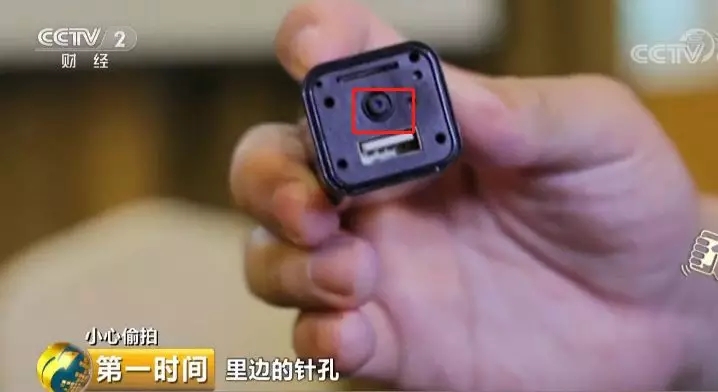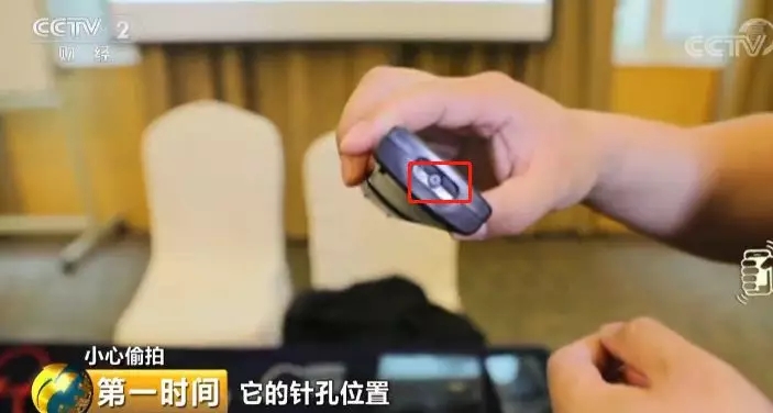 网络安全专家杨哲:这种是早期的插座型,这是针孔位置;手机电源的充电头,去掉头可以看到里边的针孔;还有遥控器型,它的针孔位置;这个针孔本身像一个螺丝钉一样,在一个箱子上,如果四个角螺丝中有一个是针孔的话,其实非常难发现。
