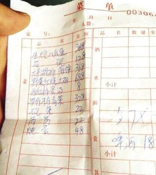 2015年7月26日,扬州游客吴先生一行在花果山景区门外的新世纪大酒店用餐,共消费9个菜肴、 1瓶啤酒,用餐结束后服务员要求结算菜肴1980元、啤酒18元、7套餐具14元,共计2012元。其中一份野菜红烧土鸡被标出688元“天价”。类似这样的酒店“天价菜”、“阴阳菜单”事件,媒体近些年曝光不少。