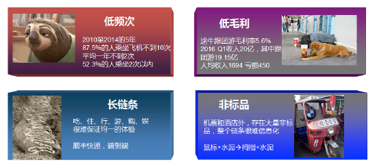 那什么是大规模可复制呢?强调这个意思是,痛点很多模式多样,有解决旅游决策痛点的,也有解决旅游购买痛点的,有发力行前路线规划的,也有专注行中服务的,有轻模式,也有重模式。在纷繁复杂中,“大规模可复制”是“牛鼻子”,所以说不怕细分环节多,只要能够具备“可大规模复制”特性,在庞大的市场规模支撑下,再小的生意也是大买卖。