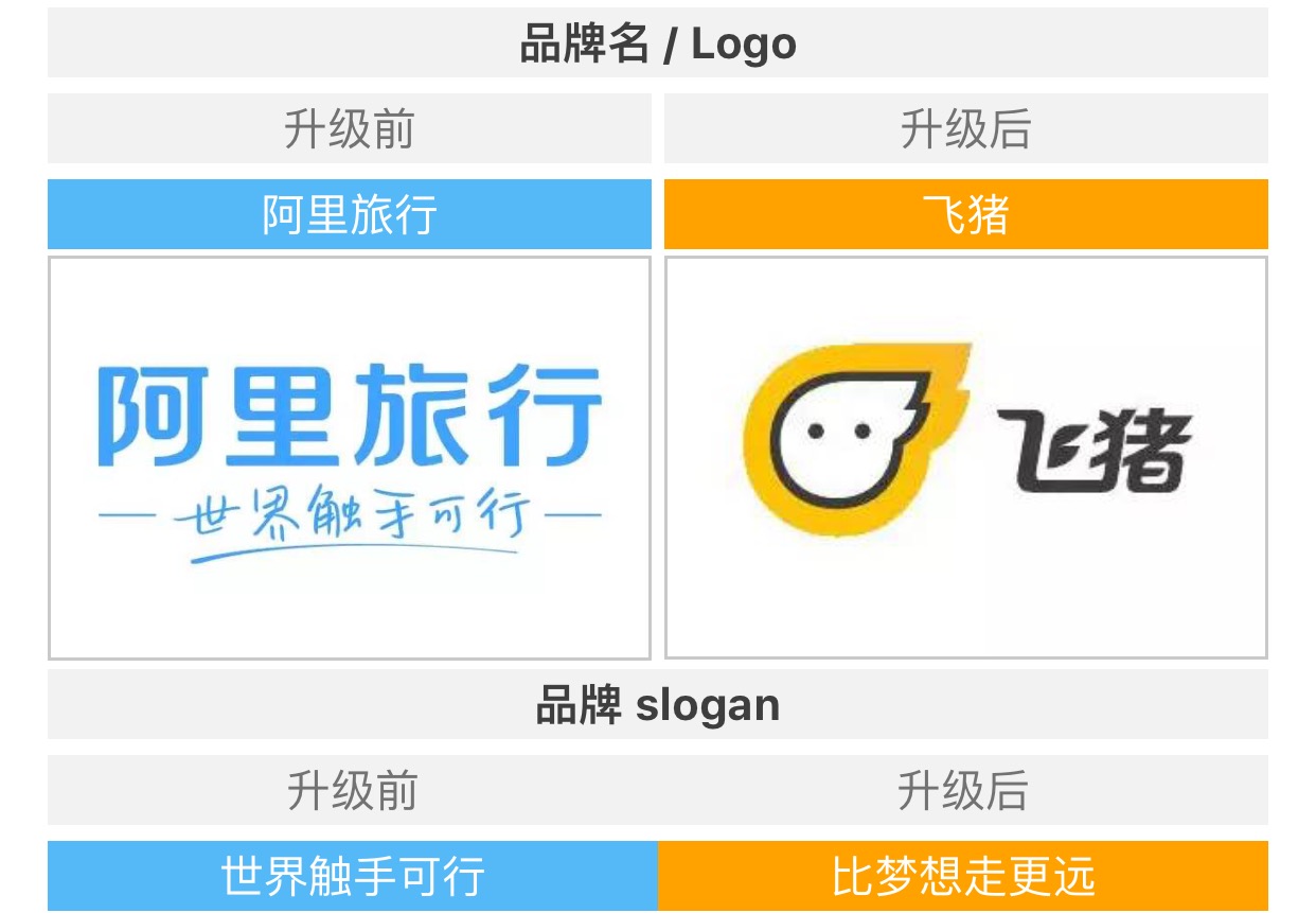 新品牌“飞猪”的口号为“比梦想走更远”, 提倡玩遍全球的“飞猪精神”,让年轻人的旅程更自由、更舒适,从容惬意地遇见旅行的惊喜,心无旁骛地比梦想走更远。