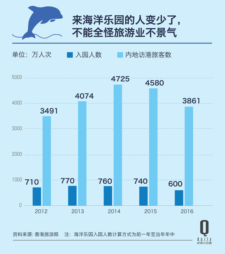 公园方面将其归咎于那个最常用的理由——访港游客的数量急剧减少。这个原因的确存在,但海洋公园的客流量下降,也有其自身经营上的问题。