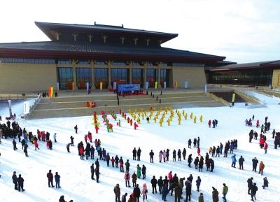 首届敦煌文博冰雪节开幕吸引了众多游客春节游敦煌