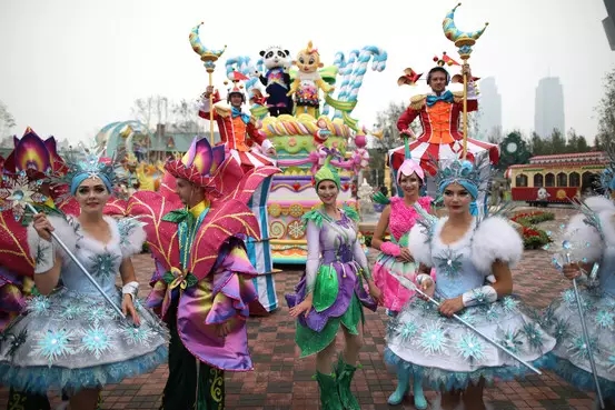 哈尔滨万达主题公园的娱乐表演。图片来源:Wu Hong/European Pressphoto Agency