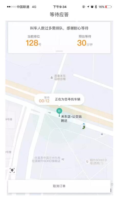 排队功能是今年滴滴才推出的,当周围叫车需求过多时,在发出叫车订单之后,页面上会显示正在为你排队。