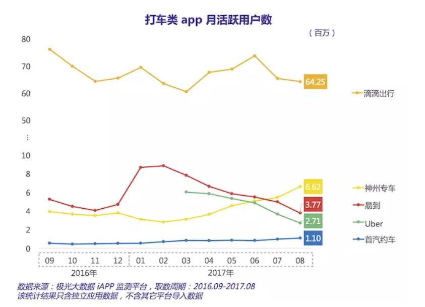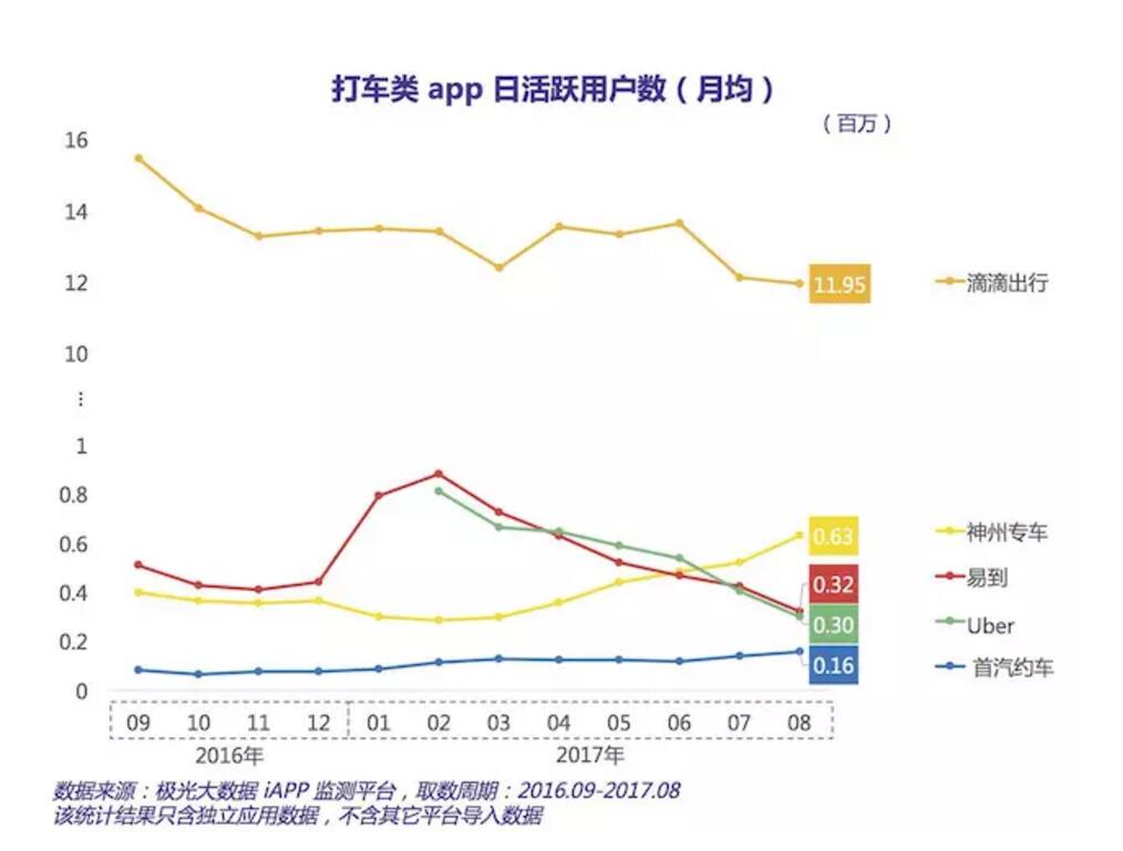 算上Uber、神州、易到、首汽这几个最大的平台,这个领域的活跃用户与一年多以前相比是下滑了。