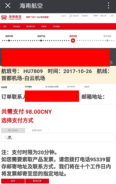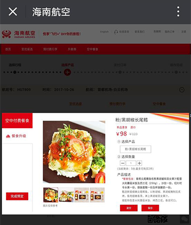 以国内全服务航司来说,也有其他公司提供餐食预定服务,但是,好点的餐食只有两舱旅客才可以享受,再者,也不是付费升级的。而据笔者了解,海航这个是首家付费升级餐食(笔者不是小灵通,如果有更早的国内全服务航司在做,请留言告诉大家),另外,该服务是对所有舱位旅客开放的。
