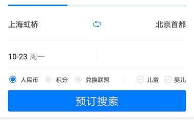 1、积分购票。在东航APP首页,航班日期选择下面,即可看到“积分”支付选项。