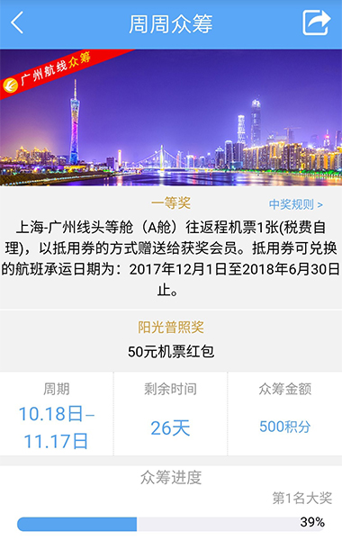 三、东航的APP上,好玩的产品比较多。笔者看到积分购票、东航消消乐、众筹赢大奖、信用飞。
