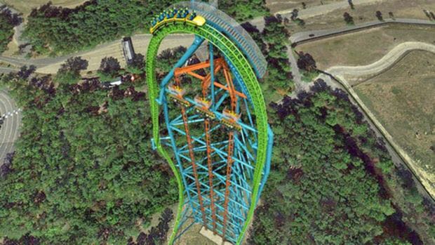 若是你还是对六旗没什么印象,也许过山车可以提示几分。如果说迪士尼乐园的卖点是美轮美奂的童话故事、环球影城的卖点是身临其境的科技体验,那么各式各样的过山车就是六旗的代表作。例如,2006年美国新泽西六旗游乐园建造了世界上最陡峭的木制过山车——巨人过山车,车轨长1320米,倾斜度为76度,速度则达到了每小时102公里。
