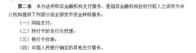支付牌照适用规定。图片来源\非经融机构支付服务管理办法实施细则截图