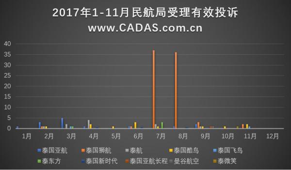 根据民航局的统计,2017年1-11月民航局收到了关于10家泰国籍航空公司的有效投诉。这从另一个角度反映出,航空市场运营品质仍有待提升。