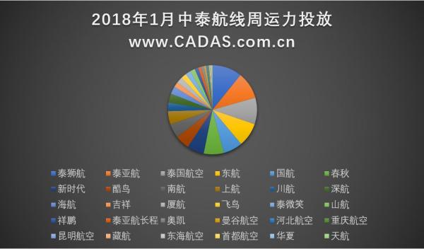 目前有20家中国籍客运航空公司与9家泰国籍客运航空公司在中泰航线运营。对比2018年1月第一周中泰航线运营航空公司与2016年11月可以观察到,泰国狮航大幅增加中泰航线运力投放。泰东方、泰国暹罗、泰国天景航空、泰国亚洲大西洋航空已陆续退出中泰航线。