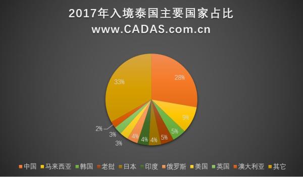 2017年入境泰国外国旅客总规模超过3538.12万人次,同比2016年增长8.6%。中国(大陆)持续保持泰国第一大入境客源国地位,相较2016年中国旅客占入境泰国总旅客比例有所增加。其它入境泰国的主要国家并未有明显变化。