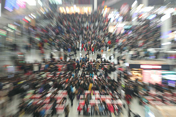 2018年2月21日下午,上海虹桥火车站,大批乘客进站,候车厅内人流如织。 视觉中国 图