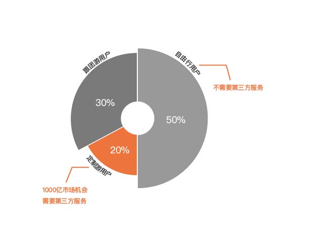 在这里说到客户,先做个整个行业消费者的大致分类,一般我们会将用户分为:跟团游客户,自由行客户,定制游客户。但本质上,定制游和自由行都是自由行客户,只是这里面的核心要点是定制游客户需要第三方服务,而自由行客户不需要第三方服务。所谓第三方服务就是旅行社和创业公司的服务,但都是为了满足客户个性化的需求。而且个人认为定制游区域会成长为一个1000亿的市场,是新的巨大机遇。