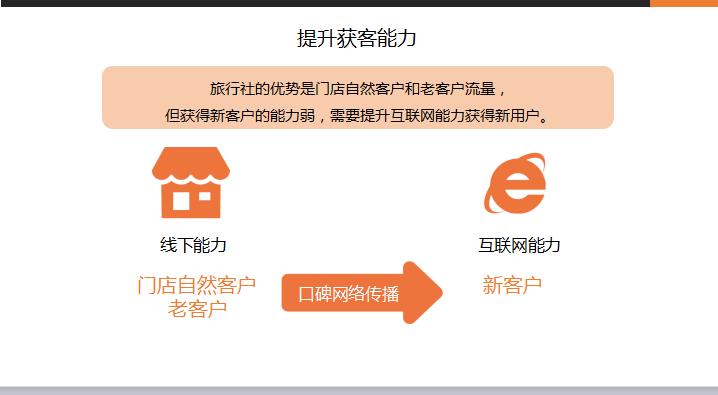 上面这段说复杂了,总体的意思就是,旅行社需要借助定制游,顺延至自由行进行转型升级,结合自身好牌,对接优质的解决方案就可以具备Online的能力,包括技术、数据、内容。我将这个模型称之为旅行社“引擎”,解决单一能力的公司很多,但确实需要一个系统化的解决方案。没有技术和数据能力、供应链能力、内容和设计的赋能都称不上真正的旅行社“引擎”。