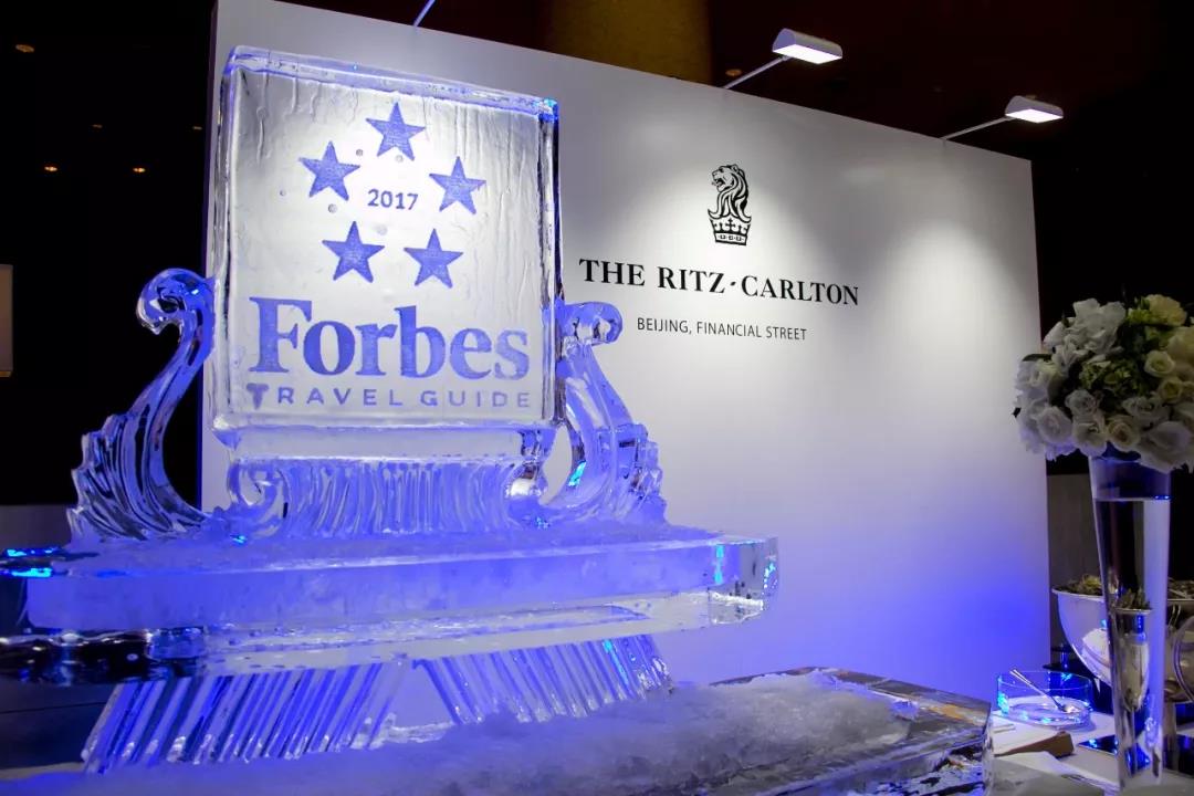 北京一家「丽思卡尔顿酒店」在显著位置展示其「福布斯旅游指南」五星评级的标志