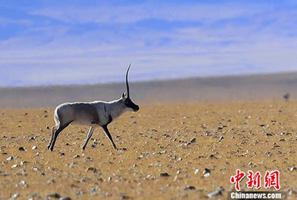 被誉为“高原精灵”的藏羚羊,主要分布于中国以羌塘为中心的青藏高原地区,属于国家一级保护动物。图为雄性藏羚羊。 中新社 资料图