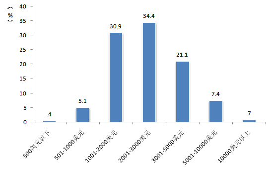 2017年受访入境游客人均消费分布图 资料来源:中国旅游研究院
