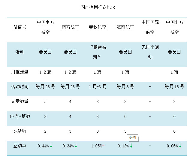 通过数据研究分析验证,从2018年第一季度内三大航空和海航、春秋的公众号推文数据中发现各航司在微信推广效果上有较大的分化。参照上述模型,本文对比分析了各航司2018年第一季度的微信推文,结合微信运营的实践经验,从文章的标题、形式、内容三方面总结了几个提高推文吸引力的套路。