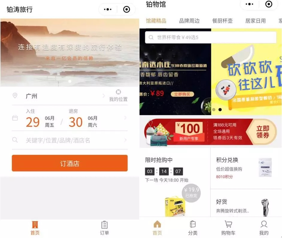 铂涛旅行小程序(左)和铂物馆小程序(右)