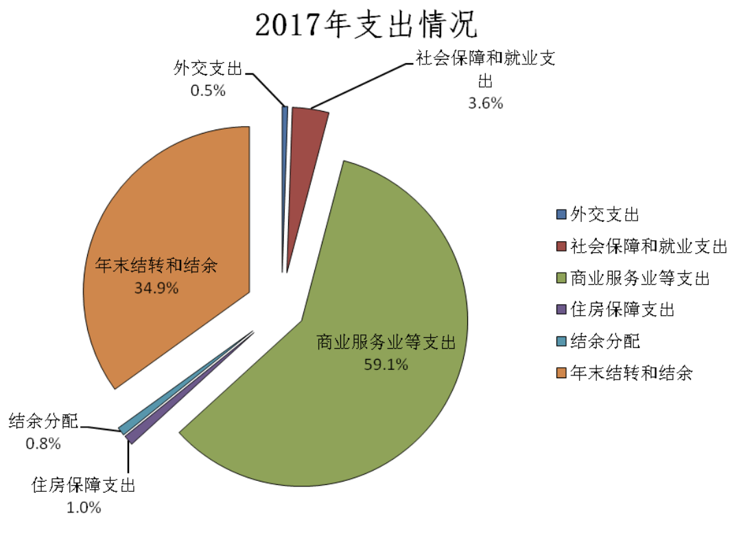 (3)商业服务业等支出(类)50,714.28 万元。主要用于旅游行业业务管理以及开展旅游宣传促销活动等方面的支出。较 2016 年度决算数减少 367.42 万元,下降 0.7%,主要原因是:境外宣传推广费用减少。