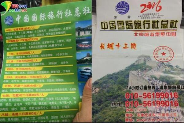 记者在同一旅游大巴上拿到同车游客两份不同的旅游宣传页。 中国青年网 图