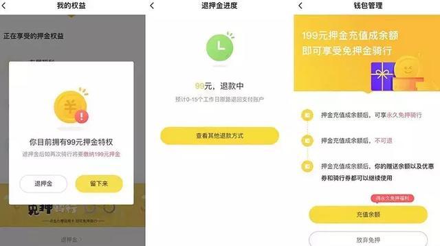 11月23日,ofo与PPmoney理财平台异业合作推出了一个退押金的新形式。 ofo用户可以“一键升级”,成为PPmoney新用户,将99元押金转变为100元PPmoney特定资产,以另一种方式退回押金。但该理财服务上线不足一天,就在各方声讨声中下线。