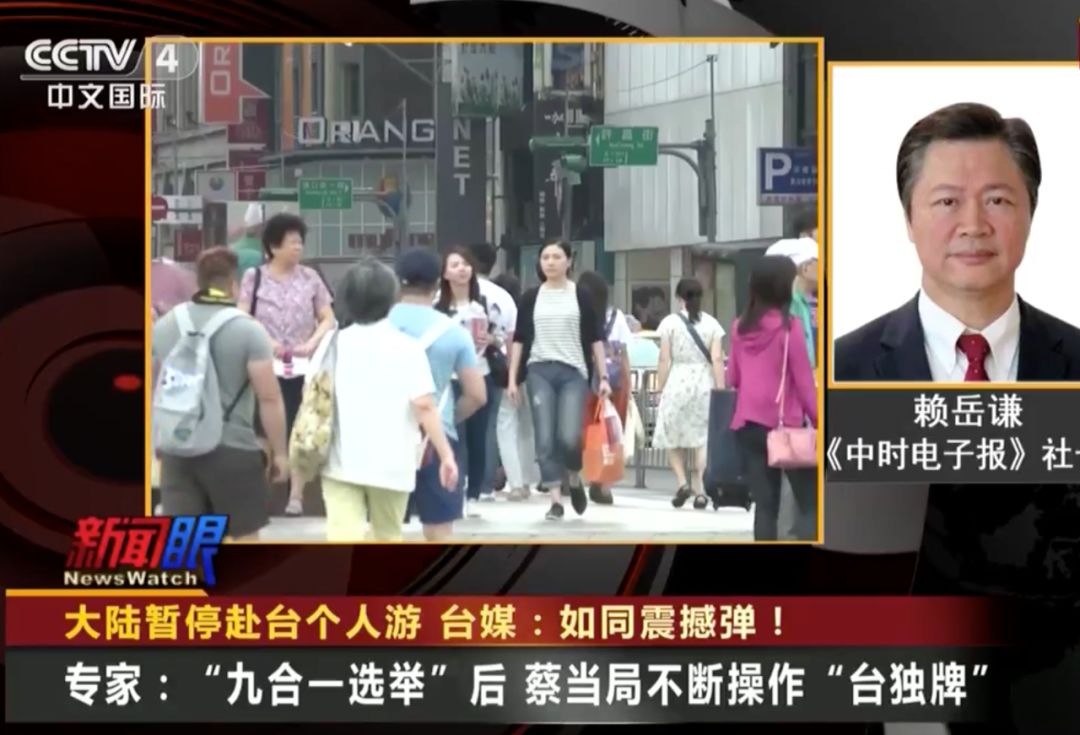 《中时电子报》社长赖岳谦评论说,大陆提出这项举措,核心无非是提醒蔡英文当局正视两岸关系和平发展的重要性。然而民进党当局的行政部门却宣称,此举不会惩罚到台当局,只会惩罚到人民,事不关己的模样令百姓心寒,更让人怀疑这个政府好像不晓得自己是两岸陷入僵局的最大问题根源。