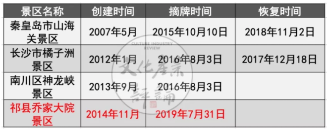 近日,国家文化和旅游部对复核检查严重不达标或存在严重问题的7家5A级旅游景区给予处理,其中,山西省晋中市乔家大院景区被取消旅游景区质量等级。消息一经公告,立即成为业界和坊间的热点话题,这已是近年来全国第四个被摘牌的5A级景区了。