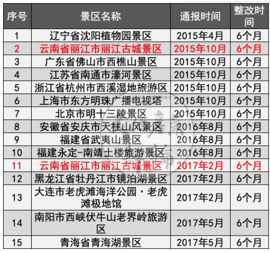 细心的读者可能注意到了,在2015年至2017年的15家受到严重警告处理名单中,云南丽江市丽江古城景区更是两度遭到严重警告,且问题几乎涵盖了5A级景区所涉的重点情节,这种情况也是近年来实为罕见的。通过此次乔家大院的摘牌事件,相信也必然会让其更警觉和自觉。