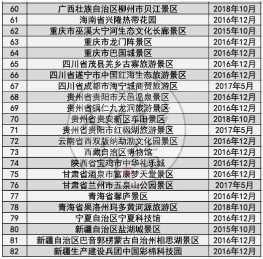 △2015年到2018年全国被摘牌的4A级景区名单(表八)