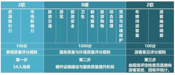 同时,还要满足《旅游景区质量等级的划分与评定》国家标准(GB/T17775-2003),包括3个细则,12个大方面,242个打分点,8项硬性建设指标和4项软性内涵与服务指标对应的分值要求 (分别要达到950分、90分、90分)。可见,无论是5A还是4A级景区,一旦被取消资质,想要“复牌”真的不是一件容易的事!