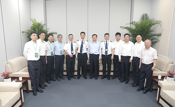 中国民航局副局长李健一行会见成都航空ARJ21试飞大兴机场机组团队。