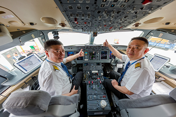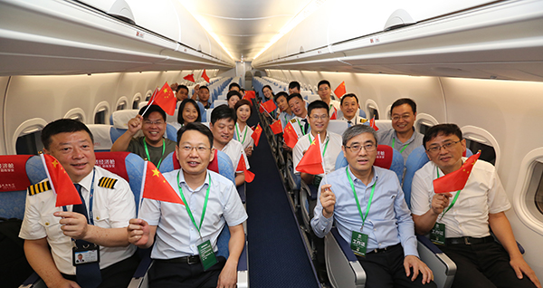 中国民航局总飞行师万向东、中国商飞公司副总经理程福波一行在大兴机场体验ARJ21试飞。