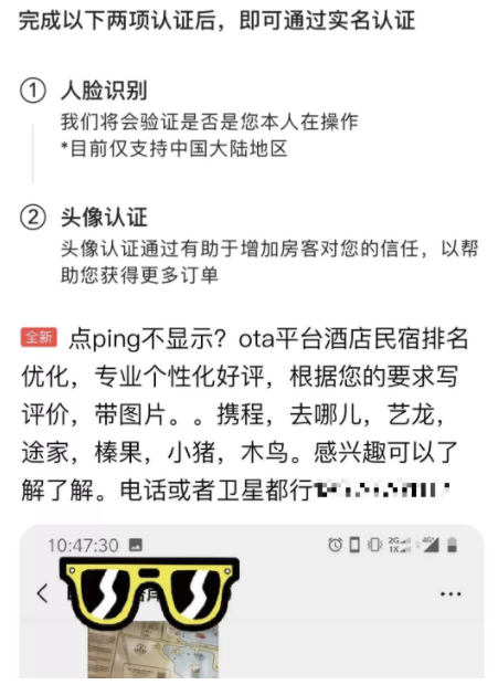 除了房源信息不能完全“保真”外,平台上的“房客评价”,也可能是“刷单”的产物。据《财经》新媒体调查,大量“OTA酒店民宿优化接单帖”充斥于淘宝、咸鱼等各大电商平台,甚至有商家打出广告称:“专业个性化好评,根据您的要求写评价、带图片”。