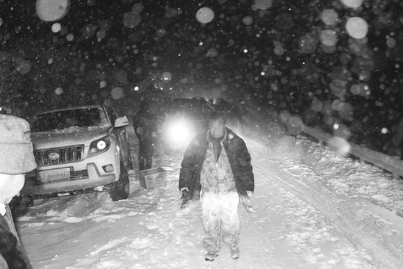 “当时,我与其他4人,被编成一个救援小分队上山救援。”小彭说,当他们上山时,发现山路上已经结冰,汽车需要戴上防滑链才能前行。与此同时,雪也下得越来越大,有的地方积雪已经没过小腿。