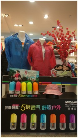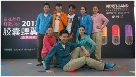 4月4日,以“自在就行 舒适户外”为主题的 2013 NORTHLAND诺诗兰胶囊蝉翼全球首发风暴在北京当代商城隆重展开,进行了为期10天的新品体验活动,为广大消费者展示并详细介绍了最新最炫的春夏季蝉翼产品。在北京新品体验活动中,作为央视广告主打的亚努斯女式弹力蝉翼与瓦列里男式弹力蝉翼均被展出。NORTHLAND诺诗兰更特别设置了超轻体验,模特秀和现场互动游戏等环节让消费者亲身体验了全新蝉翼系列。第二代透气蝉翼采用的是独特轻薄面料,不但具备柔韧弹力,耐磨抗撕拉,更有独特科技,五倍提升透气性,能轻松适应各种户外场合,体验自在舒适户外。