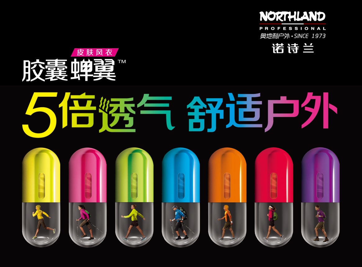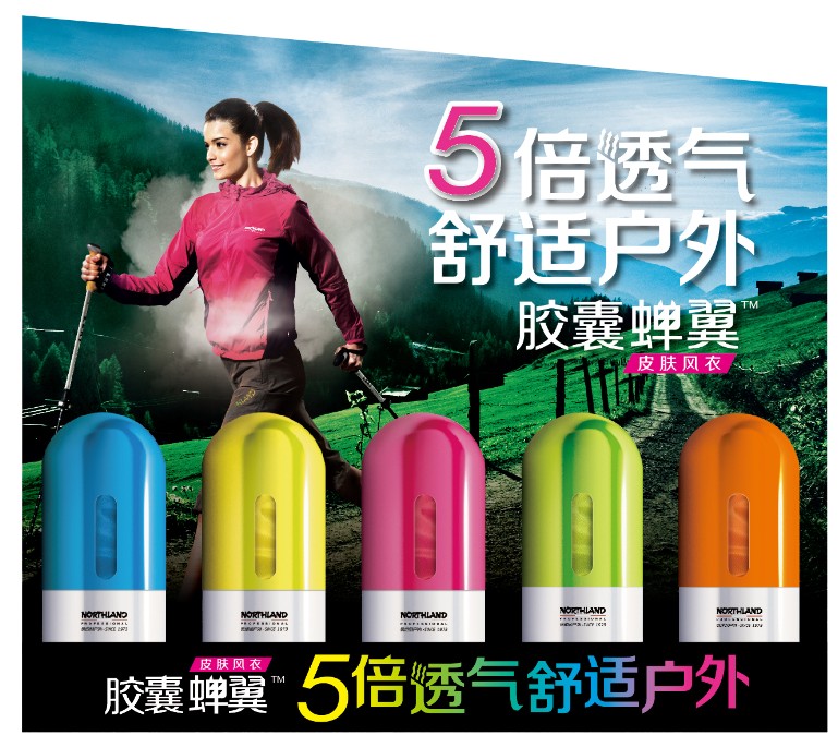 2013年3月来自奥地利的专业户外品牌 NORTHLAND诺诗兰 全面推出13春夏新品——胶囊蝉翼(皮肤风衣)。借用胶囊蝉翼色彩鲜明、丰富、创新的5倍透气技术等元素,将红、蓝、黄、绿...等色彩大胆创意成七彩胶囊蝉翼概念,与《outdoor Instyle》户外新潮相迎合,为户外爱好者提供七彩、透气、便携的新一代户外皮肤风衣——胶囊蝉翼,将来自奥地利的七彩盛宴带给中国的每位户外爱好者,它将成为您的春夏户外出行装备优选。