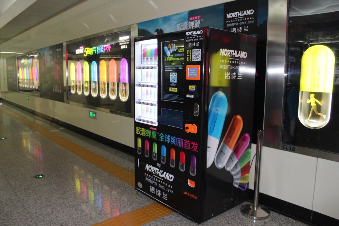 另外,在沈阳、成都、南京3个城市的地铁中, NORTHLAND诺诗兰 在地铁广告的配合下,投放了极具创意性的胶囊机互动活动,配合微博,上传胶囊蝉翼广告照片即可赢多功能胶囊,更可赢得限量胶囊蝉翼(皮肤风衣)及U盘。4月3日胶囊机在沈阳青年大街站首次亮相,在当地引起巨大轰动,更吸引了大批市民争相参与,投放期间微博好评不断,仅两天创造了3万多的微话题量,再次引爆了沈阳全城。 南京、成都胶囊机互动活动也将相继在4月中下旬陆续展开。大家也可以通过诺诗兰官方微博(@奥地利NORTHLAND)、官网、终端等途径申领获得七彩多功能胶囊, 数量有限,赶紧行动噢!