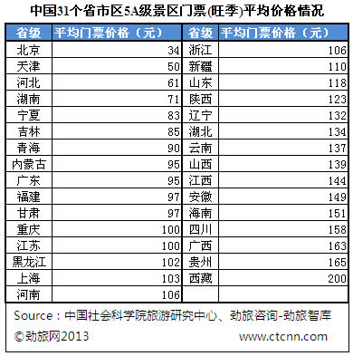 在此背景下,全面梳理我国旅游景区门票价格整体状况,为政府、企业、公众提供科学全面的数据分析,成为研究机构的职责所在。作为旅游专业研究机构,中国社会科学院旅游研究中心联合劲旅兴业共同推出《2013年我国4A、5A级旅游景区门票价格分析报告》,以期全面展示我国旅游景区门票价格的整体全貌,通过系统的数量分析和权威的专家解读为政府决策、企业经营、公众了解、游客出行提供科学的依据。