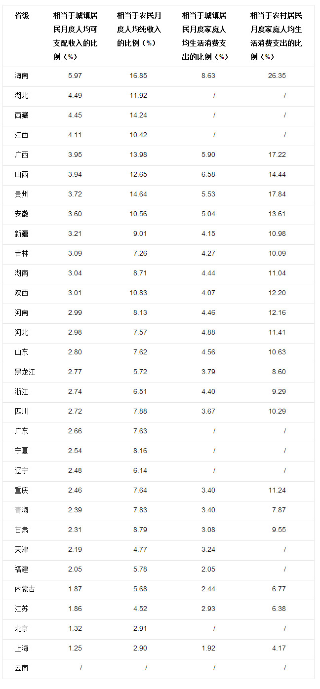 注:“/”表示该省/市/区未统计或尚未发布居民消费数据