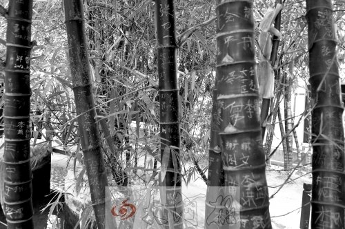 青竹林区数百棵竹子上都刻满了密密麻麻的文字