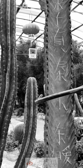 “刻名字时找不到适合的位置,有些游客就将竹子折弯了刻。”顺着管理人员手指的方向,记者看到多棵竹子2米多高的表皮都刻上了名字。“仅这片竹林上的名字就有数万个。”一旁的谢丽娟说。“植物园共有植物1200多种、1.5万多株,有内地罕见的椰子树、海南露兜、美人树、香蕉树、巨人柱等稀有植物,它们无一幸免都被刻上了‘到此一游’。”记者在一棵龙舌兰前看到,几乎每片叶子上都刻满了名字,远远看去像得了“枯叶病”。