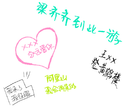 “到此一游”成因复杂,剥茧抽丝,似乎也能找到共性的蛛丝马迹,那就是一个“炫”字:到人未到之圣地,炫独到;入普通人难入之境(如国外),炫财富;在多得数不清的留字再挤下“到此一游”,炫存在;写下甜蜜爱情宣言,炫幸福;刻下龙飞凤舞字体,炫书法……风气之盛,去年四川一毛贼偷完之后,还在作案场所留下“小偷到此一游”,炫其高超之行窃技艺,可谓窃贼之VIP。
